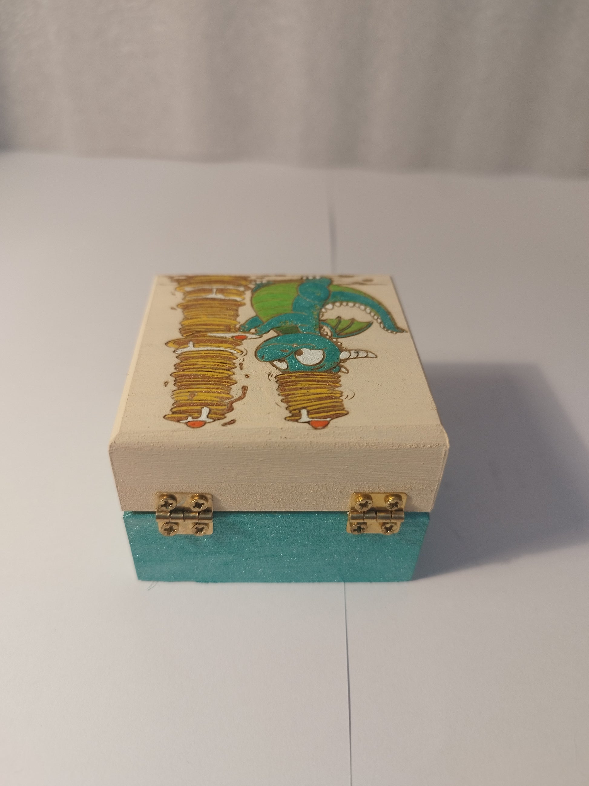 Pancakes dragon engraved and hand painted jewellery box