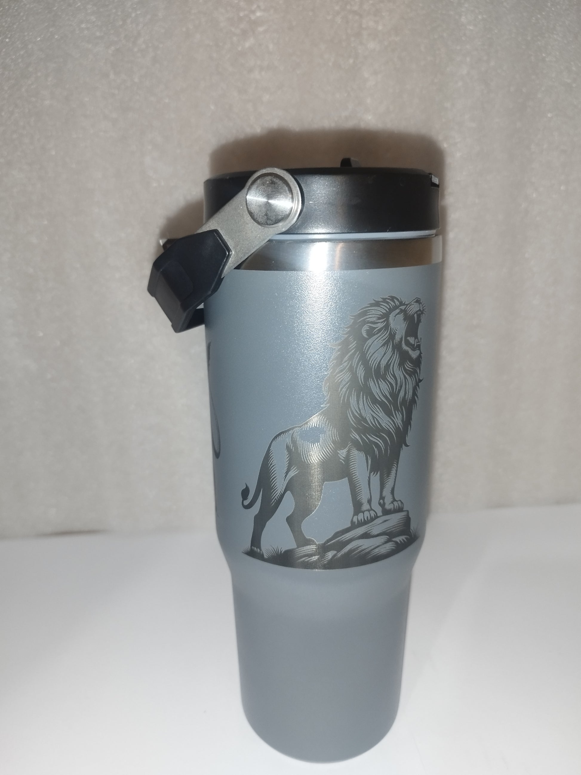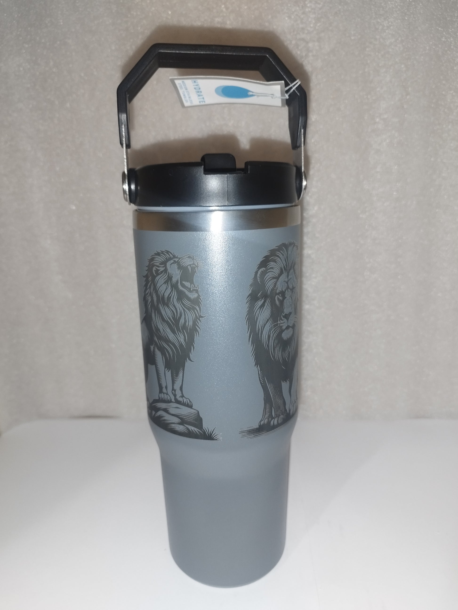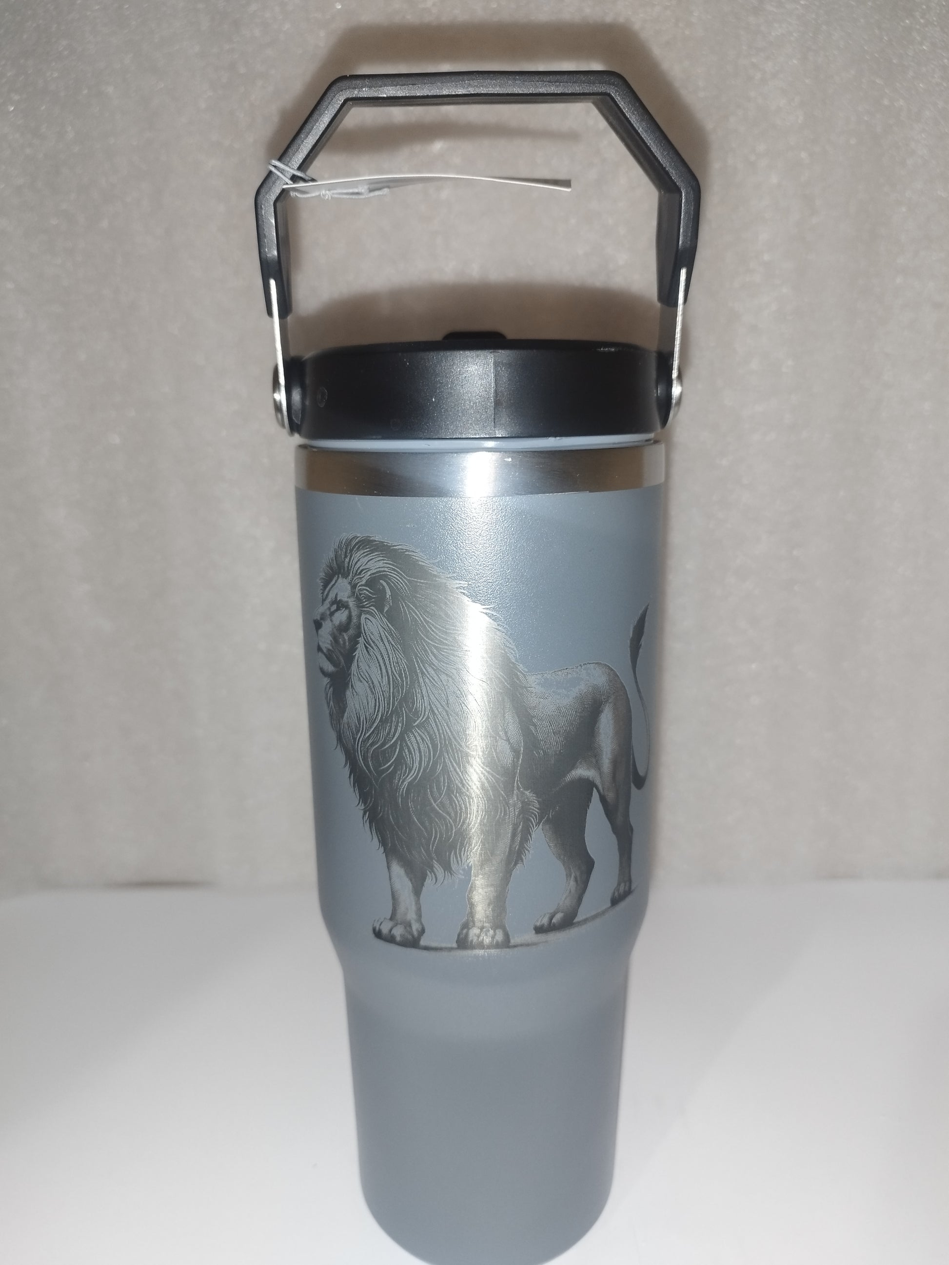 This engraved stainless steel Tumblr comes in a lion theme. 🦁